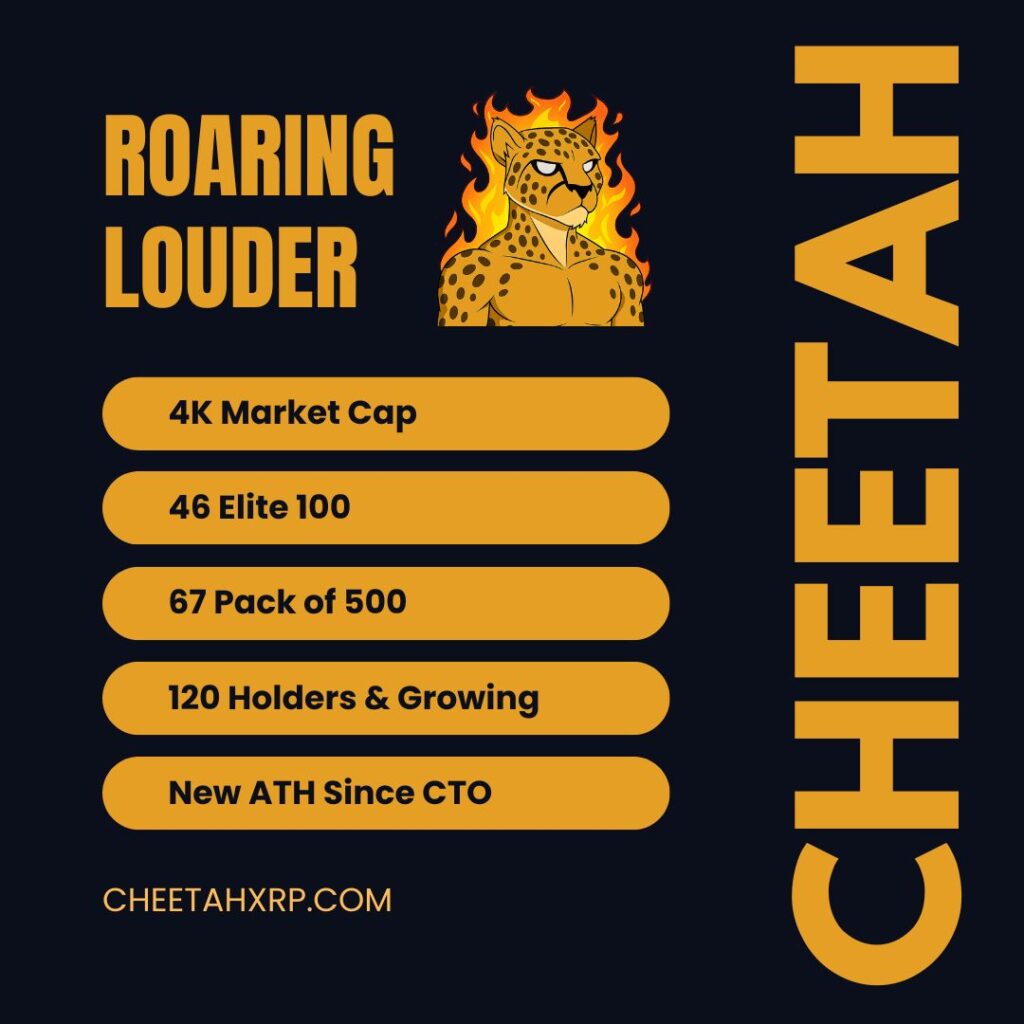 CHEETAH prioritizes utility, with NFT and token launches, strategic XRPL partnerships, and a focus on fostering a vibrant space for crypto enthusiasts to rally and thrive.